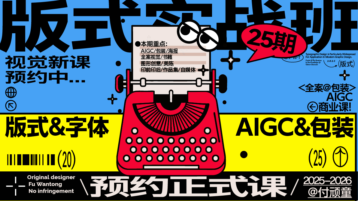 主讲老师:付顽童 付顽童资深平面设计师,创办人,自媒体博主,拥有独特的版式授课风格和丰富的教学经验。在多家知名平台担任讲师,深受学生们的喜欢和好评,教学过程中,注重学生个性化的需求和学习方式,采用多种教学手段和方法,帮助学生更好地理解和掌握知识 。 包装设计师:南嘉木 付顽童团队资深包装设计师,讲师,服务多家知名企业 拥有丰富的包装设计和三维建模渲染经验。曾服务过多家知名企业,如华为、三只松鼠、洁柔、益禾堂、蜜雪冰城等,获得了客户的高度赞誉和信任。 作为资深包装设计师,具备深厚的设计功底和创意思维